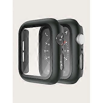 1pc Apple Watch PC Protective Case With Tempered Glass Screen Protector, Fits 38mm, 40mm, 41mm, 42mm, 44mm, 45mm, 46mm, Plastic Case Compatible With A