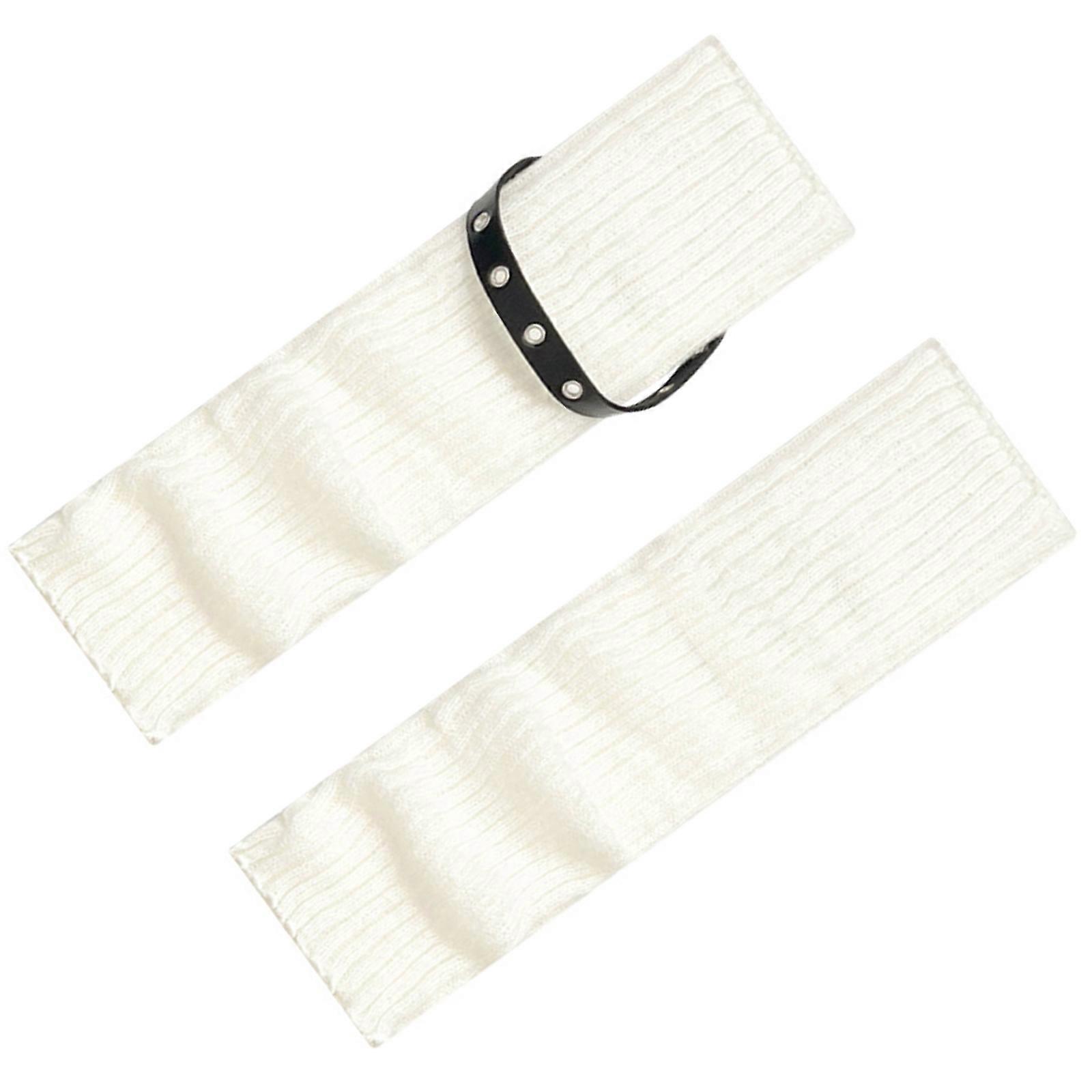 Ribbed Knitted Boot Toppers Cover with Eyelets Leather Belt Harajuku Gothic Punk Leg Warmer Calf Length Socks Streetwear White
