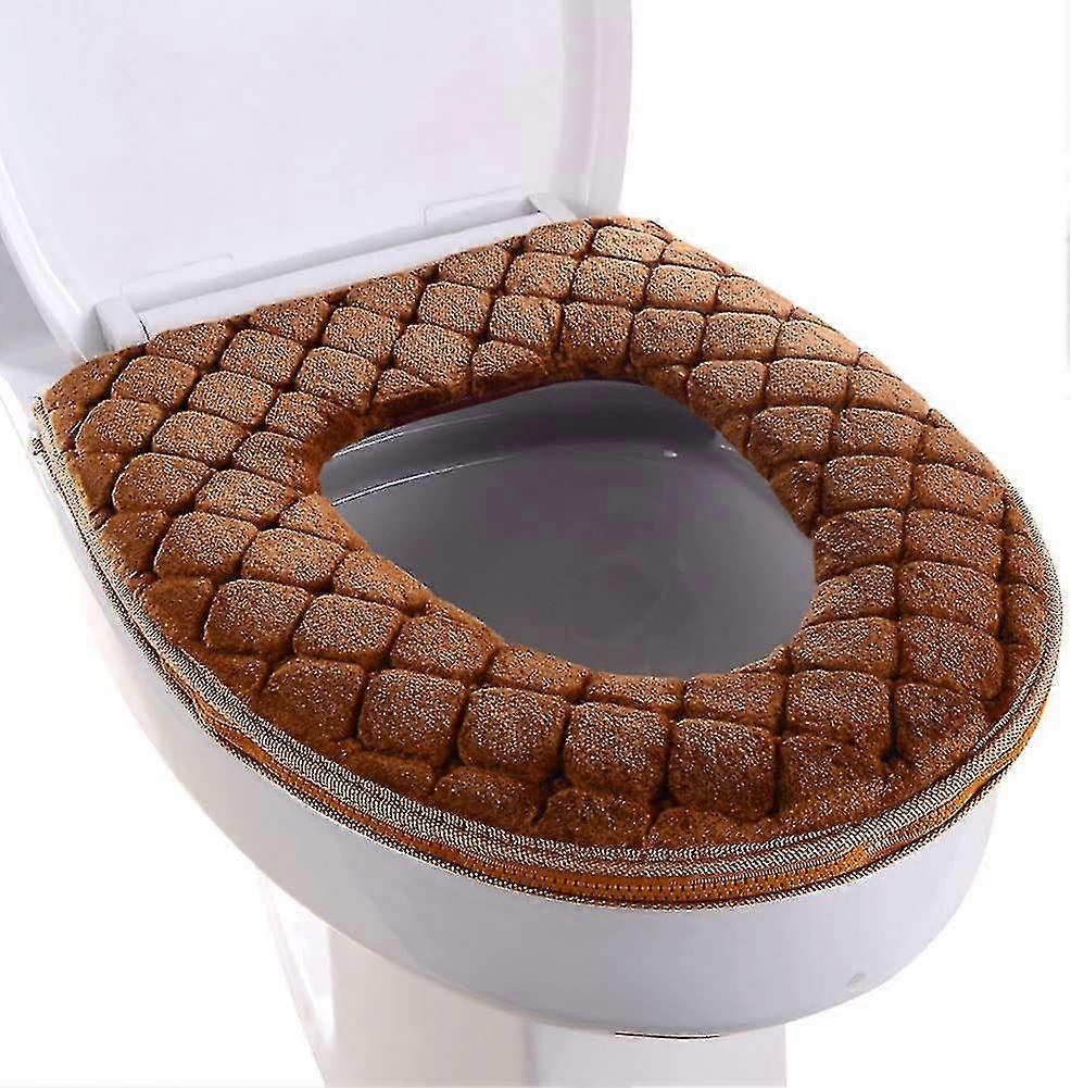 Toilet Seat Cover, Soft Toilet Seat Cushion Toilet Warmer Washable Universal Toilet Seat Cover Pads With Zipper Brown