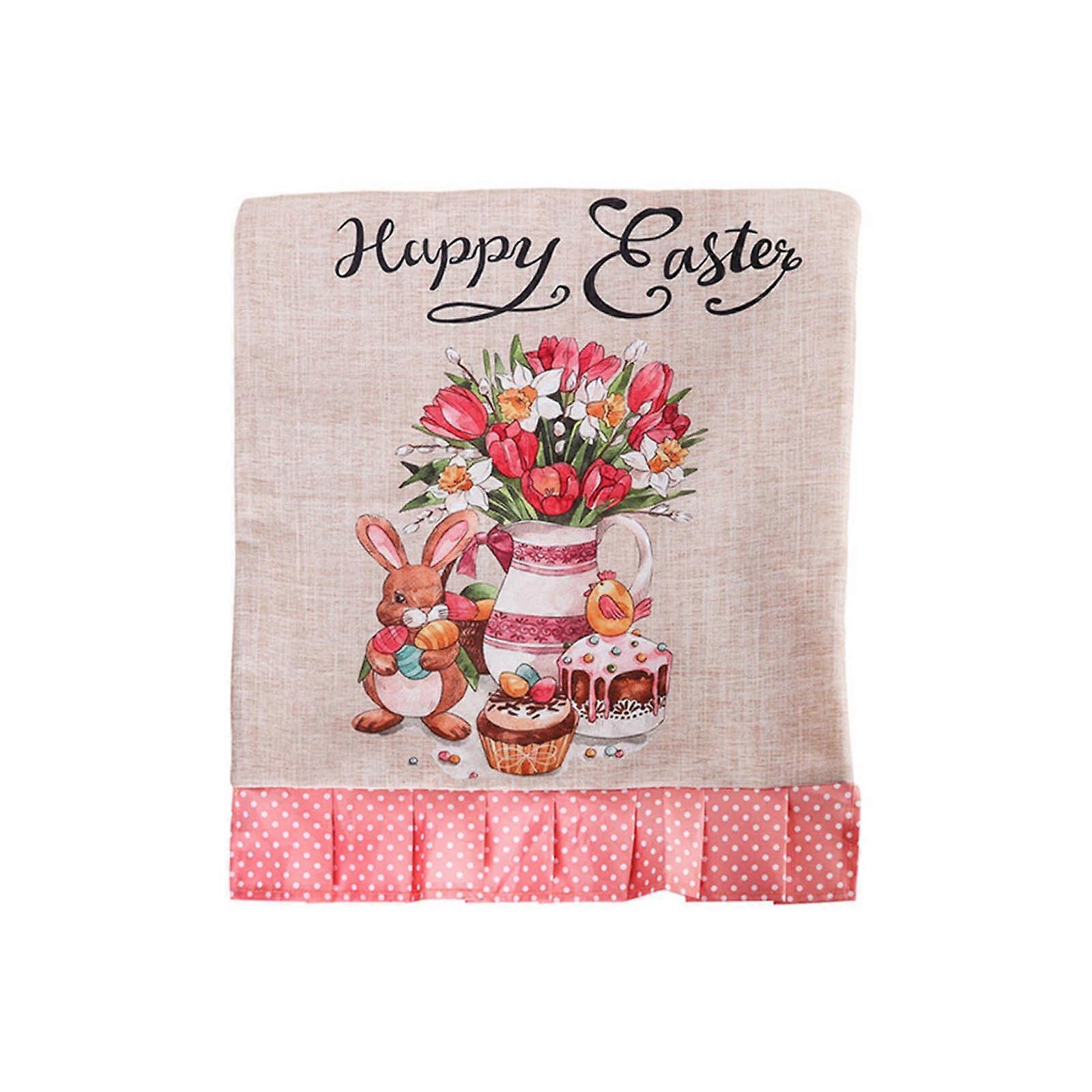 Easter Chair Seat Cover Rabbit Gnome Print Dining Chair Back Cover Vintage Chair Slipcover for Spring Dining Farmhouse