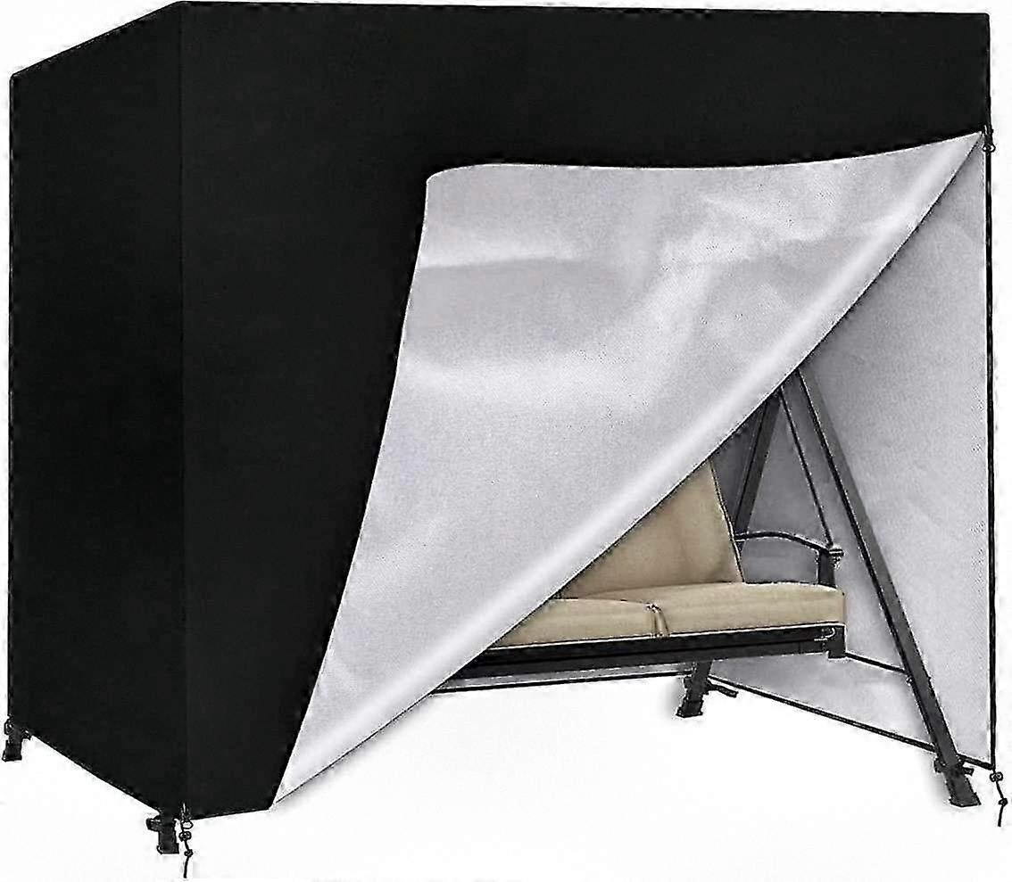 Garden Swing Cover Size - 220125170cm (L x W x H). The wide design of the Hollywood swing cover ensures that it is very easy to put on take off. Please check the dimensions of your swing garden for correct seating. High Quality Swing CoverMade of wear-resistant fade-resistant oxford fabric (120gsm) with thickened coating, waterproof (up to 2000PA) permanent tear-proof. UV-resistant design provides exceptional durability against sunlight. The protective cover protects your Hollywood swing in all seasons. Windproof Swing Cover- There are two adjustable straps 4 buckles on the patio furniture cover, which provide secure hold. So the garden swing is not blown away. Tear Fade Resistant- Made of non-fading yarn dyed oxford fabric with PVC coating, waterproof, dustproof UV resistant. Double stitched edges are rip tear resistant provide year-round protection for your outdoor swing set. Easy to clean- Waterproof, tear-proof, UV-resistant, heat-resistant washable, the hollywood swing cover is extremely easy to clean, pour smart dry in the sun. The storage bag provided for storage easy.
