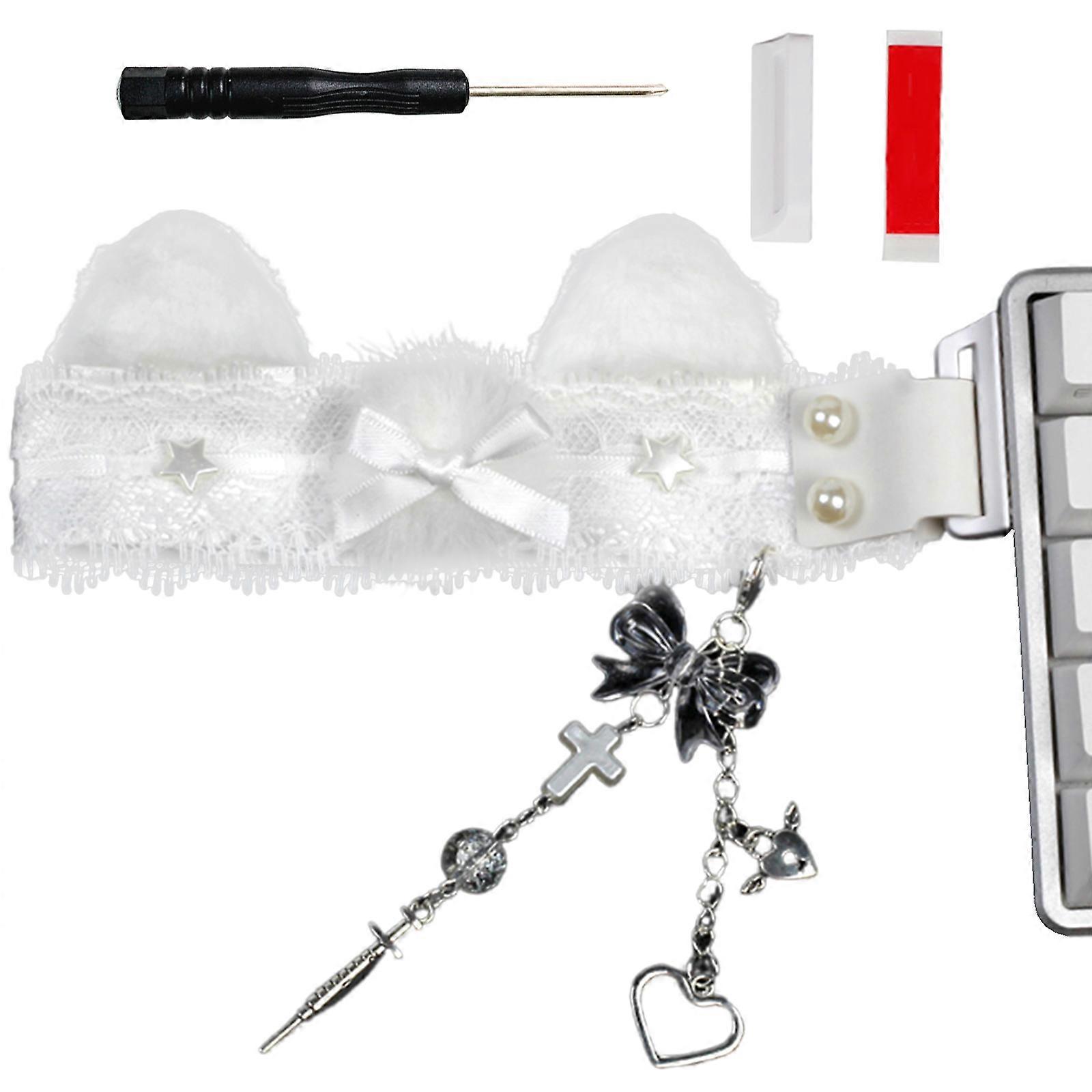 Delicate Washable Cotton Ribbon Keyset Cover With Detachable Enchantments Individualized Typing Experience White