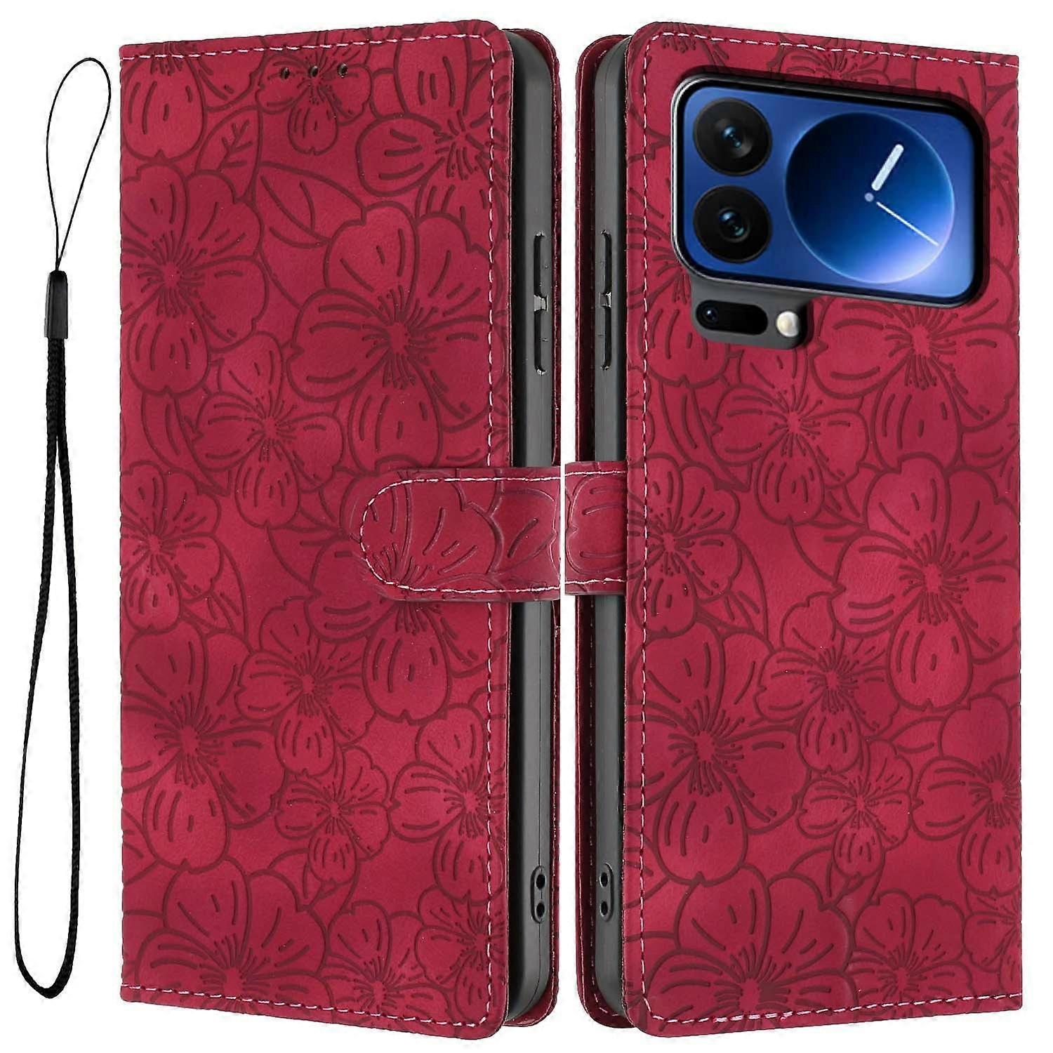 For Xiaomi 17 Pro Flip Case Cherry Blossom Pattern Leather Wallet Stand Phone Cover with Wrist Strap