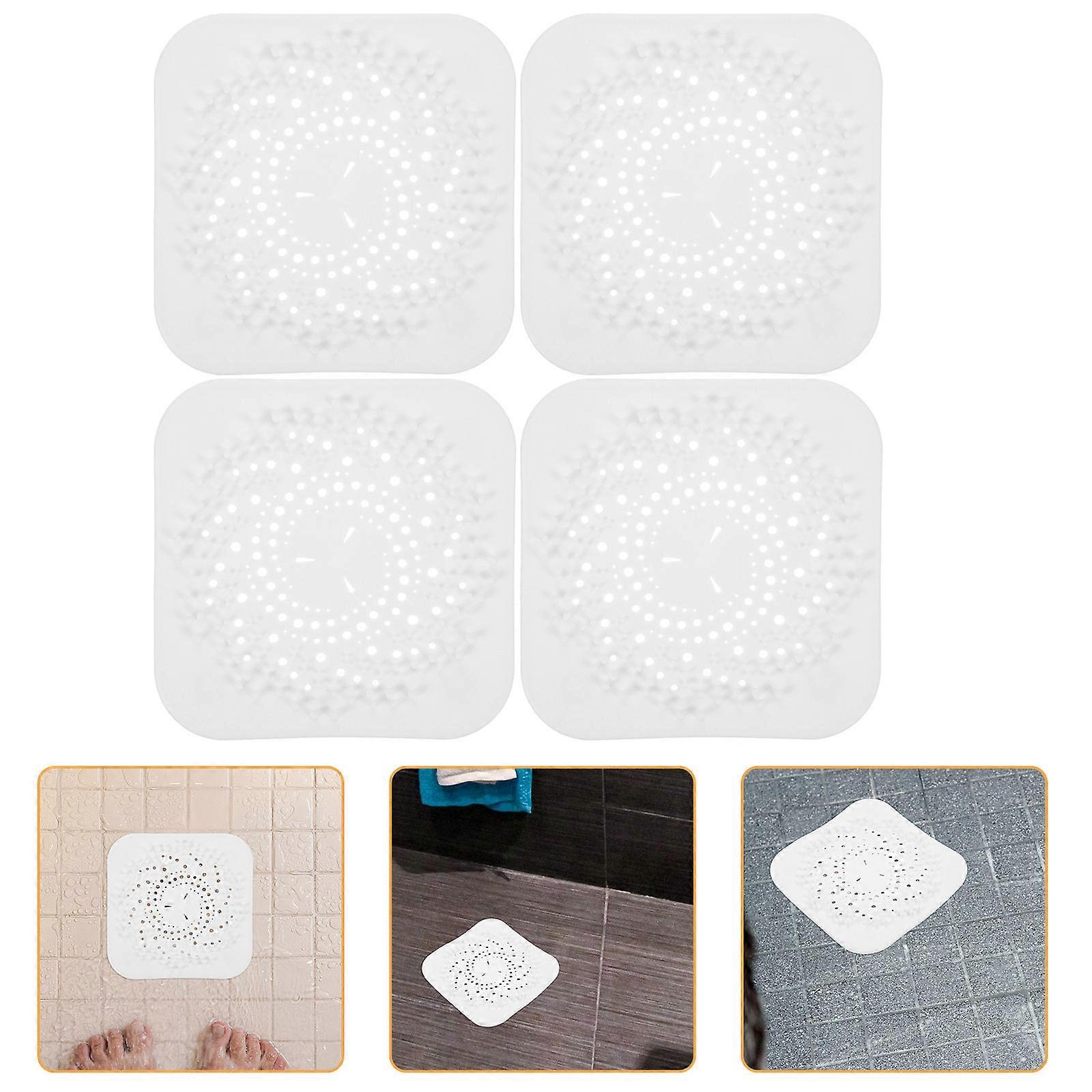 Drain Protection Hair Filtering Cover 8Pcs Square Hair Catcher For Bathroom Kitchen Use Flexible White
