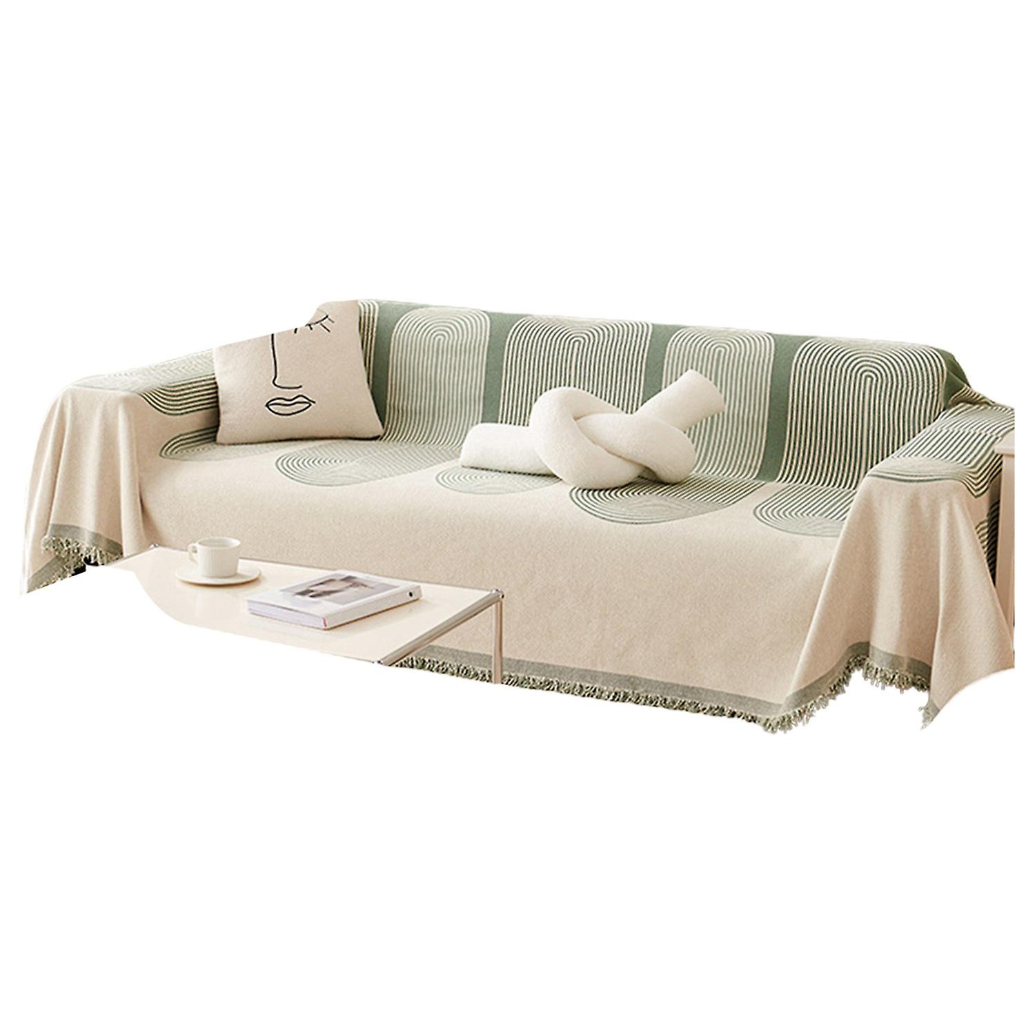 All-season sofa cover with a simple geometric pattern and short fringe for a stylish look.