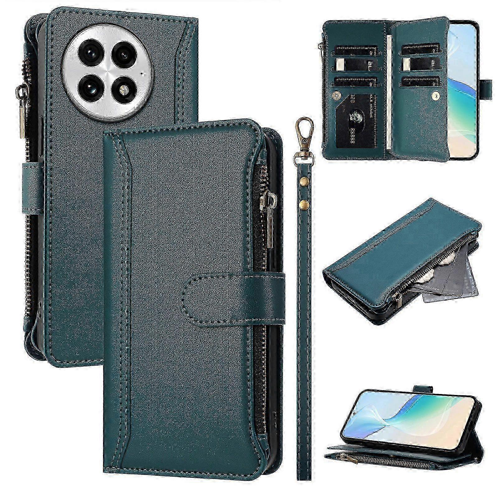 For OnePlus 13 Leather Case 9 Card Slots Zipper Wallet Stand Phone Cover with Wrist Strap w