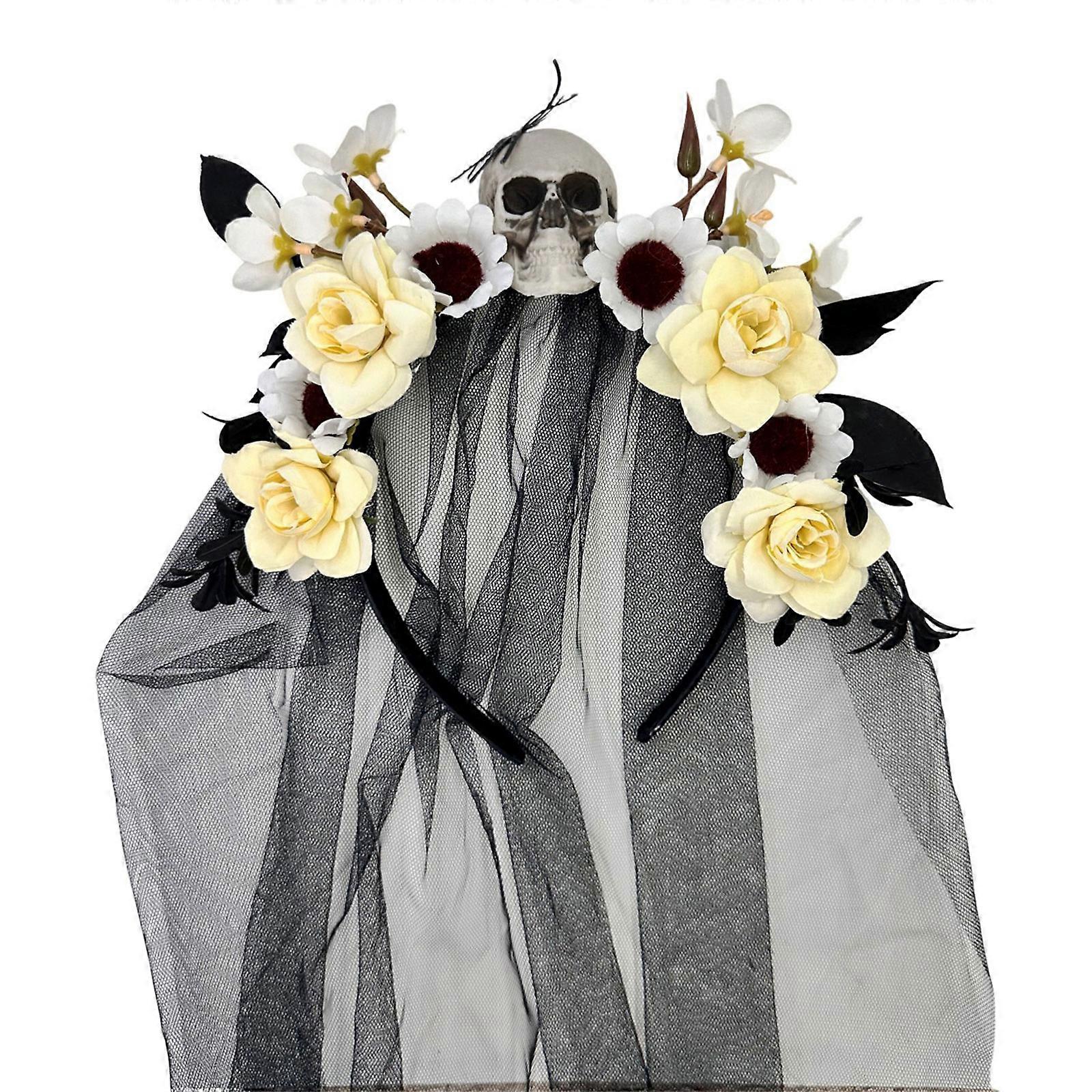 Witch Headpiece Skull Flower Hairhoop For Halloween Costume Party Day Of The Dead Celebration Veil Hairband for Cosplay F
