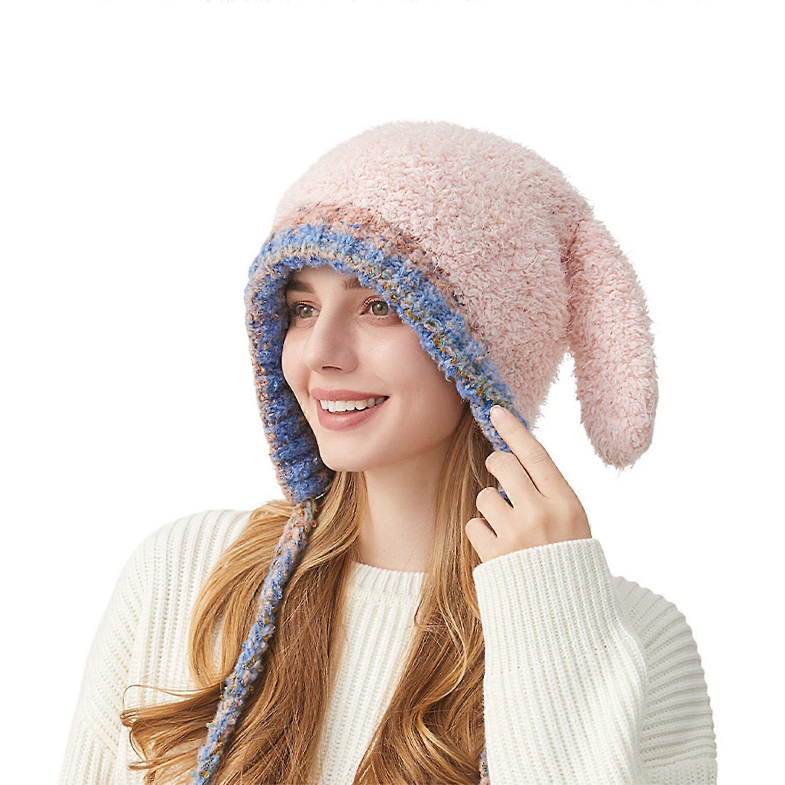 Furry Cartoon Head Cover with Ear for Girls Cartoon Hat with Thicken Lining Oversized Headgear Hat Photo Props Pink