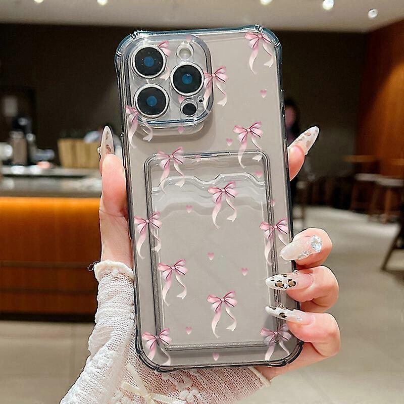 For iPhone 16 17 Pro Max 15 14 13 12 11 Wallet Card Holder Bow Soft Case Cover