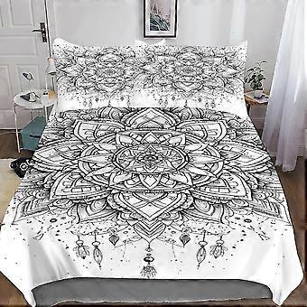 Symmetrical Mandala 3D Print Quilt Cover 3PCs Exotic Boho Duvet Bedding Set with Microfiber and Hidden Zipper Closure with Pillowcases