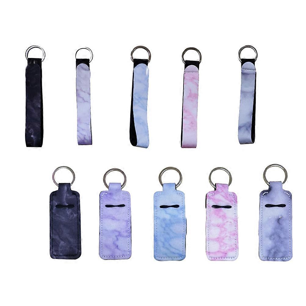 Marble Printed Lipstick Cover Neoprene Key Ring Fashionable Everyday Use 3.9×1.6×0.2in Portable Lipstick Storage 10Set