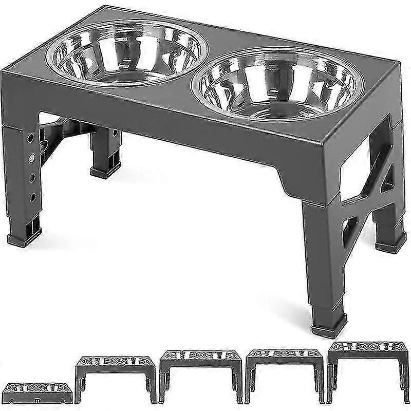 Dogs Double Bowls Stand 4 Adjustable Height Pet Slow Feeding Dish Bowl Medium Big Dog Elevated Food Water Feeders Table-grey--