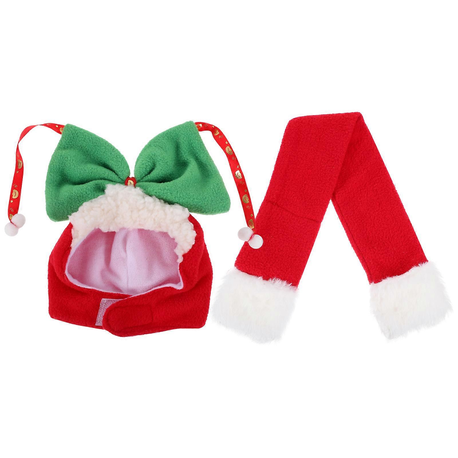 Dog Warm Hat Pets Head Cover Christmas Decorative Headdress Scarf Set Assorted Color 1Set