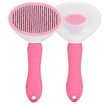 Dog Cat Brush CombRemove Floating Hair Press Button Tear off Whole Piece Pet Massage Fur GroomingToolPink