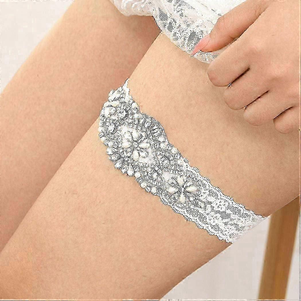 Shiny Crystal Bride Garter Bling Rhinestone Leg Belts Wedding Bridal Prom Lace Garter For Women And Girls (silver) (prettyj)