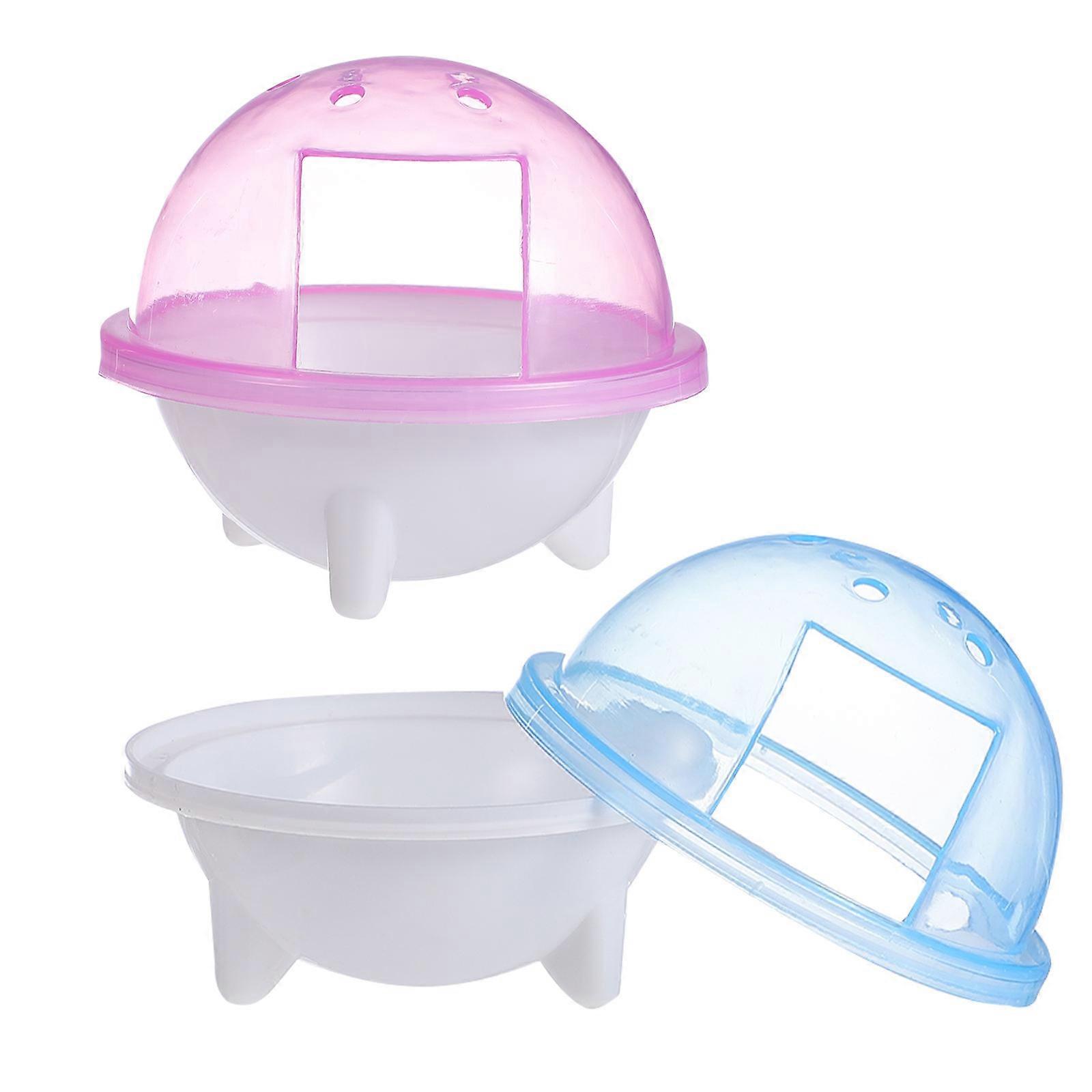 Hamster Cage Bathroom 2pcs Multi Functional Plastic Bath House Toilet for Small Animals – Non Slip Design, Blue & Pink, Litter Containment