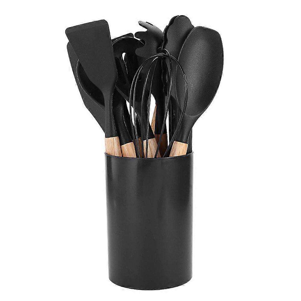 Silicone Kitchen Utensils Set with Wooden Handle Heat-Resistant Cooking Tools Non-Stick Safe Kitchenware Set for Home Restaurant