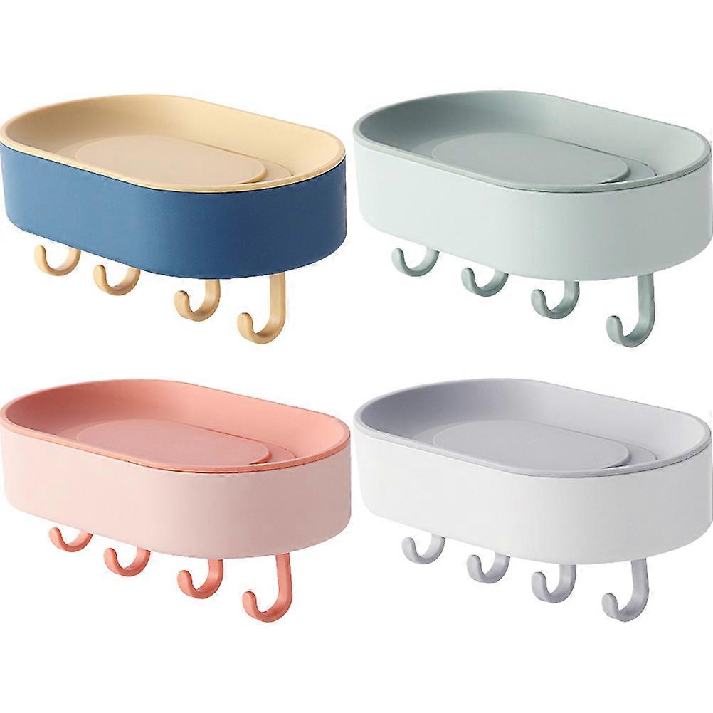 Plastic Soap Dishes Wall-Mounted Soap Holder for Bathroom Kitchen Drainage 4Pcs