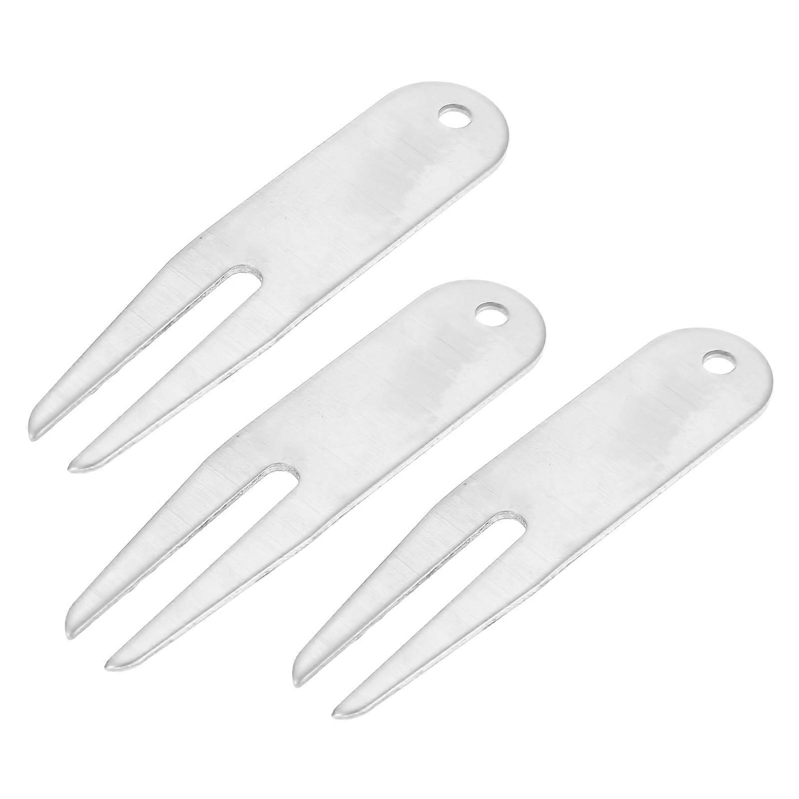 Golf Ball Marking Tool Durable Golf Divot Fork Silver 1.8X7.5CM Repairing Pitch Marks For Golf Players 3Pcs