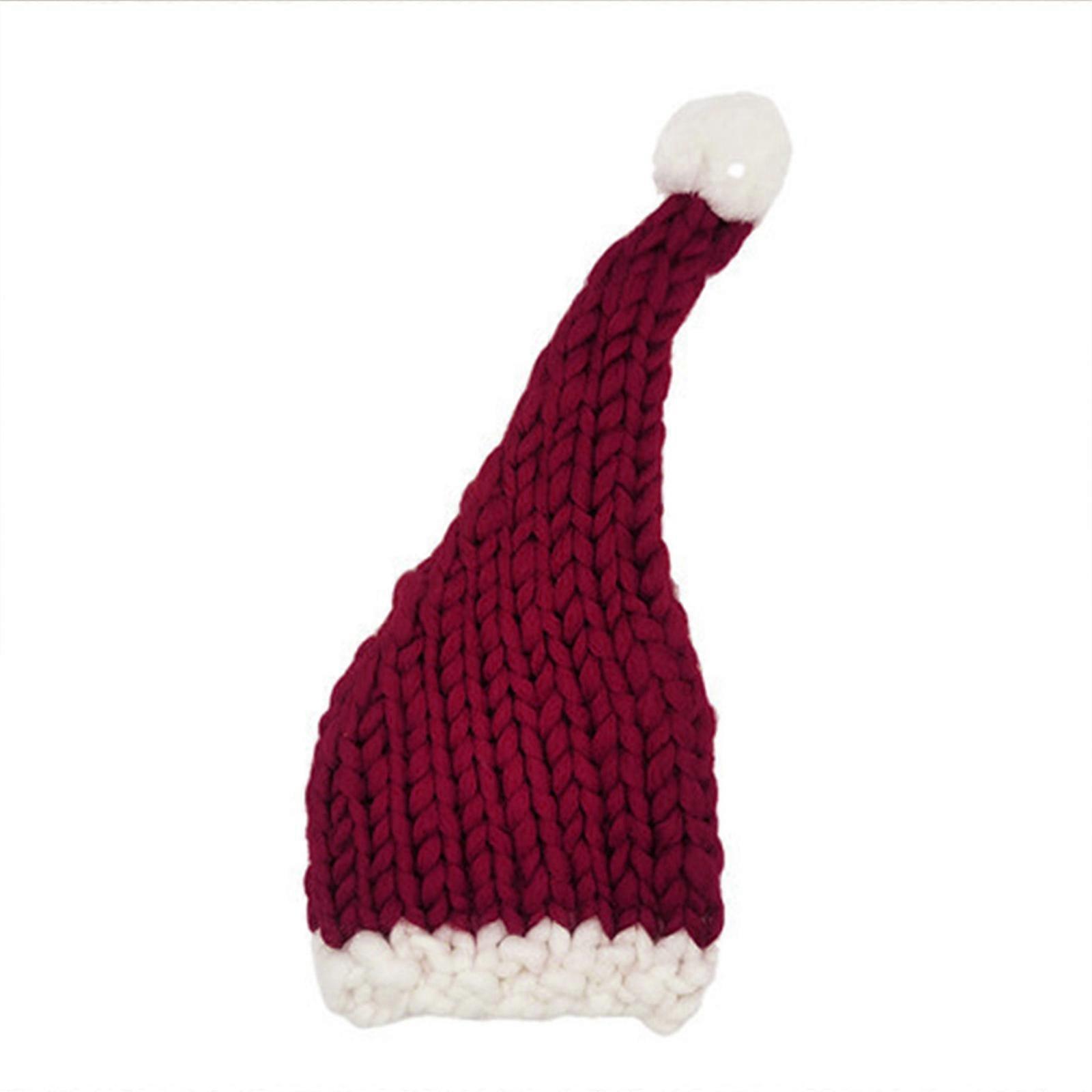 All-match Parent-child Wool Hat Long Tail Christmas Elf Knit Hat Ear Protect for w/Pompom Winter for Xmas Halloween New Wine red S