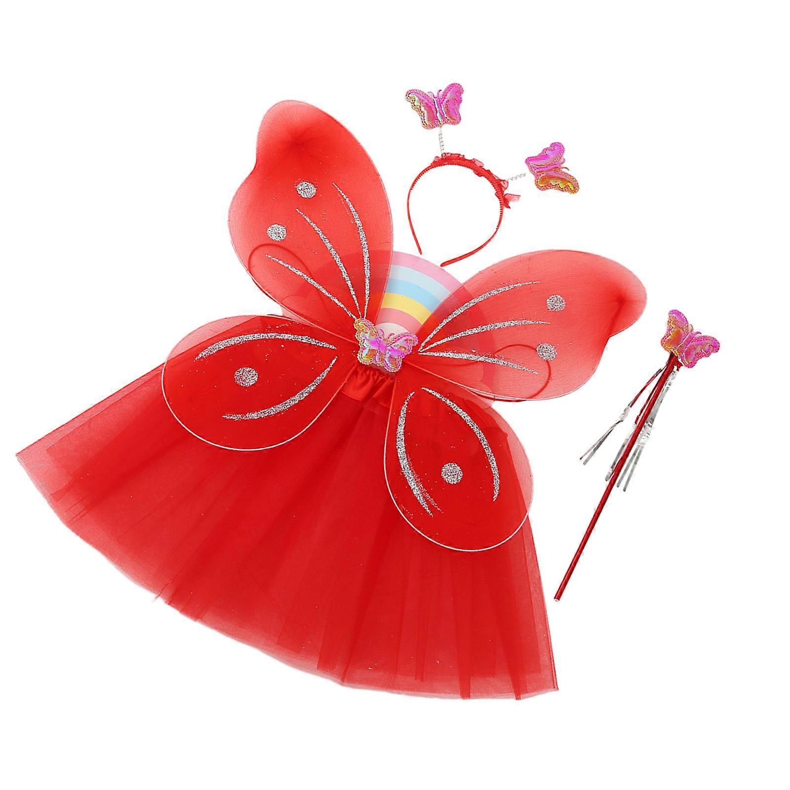 Fairy Wing for Kid Butterfly Wing Angel Wing Dress Up Wing with Headband Fairy Stick Tutu Skirt Halloween Costume Wing Red