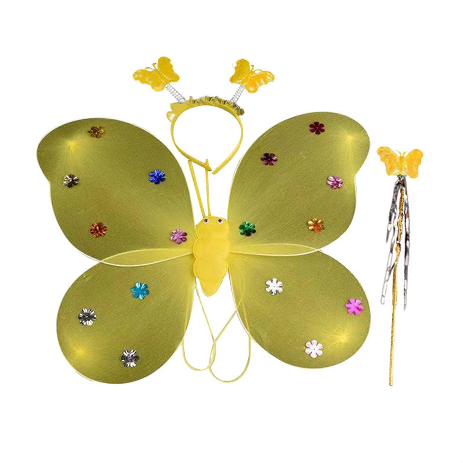 Angel Wings for Girls Kid Lovely Fairy Butterfly Wings with Headband Fairy Stick Halloween Party Dress Up Cosplay-Props Yellow