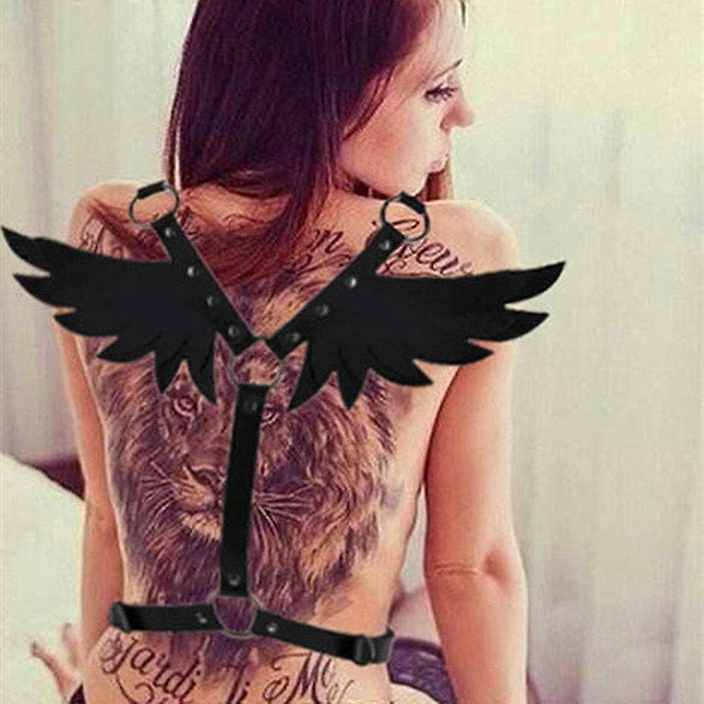 Angel Wings Sexy Body Chain Women's Punk Leather Harness Braces with Buckles Adjustable Sling Belt