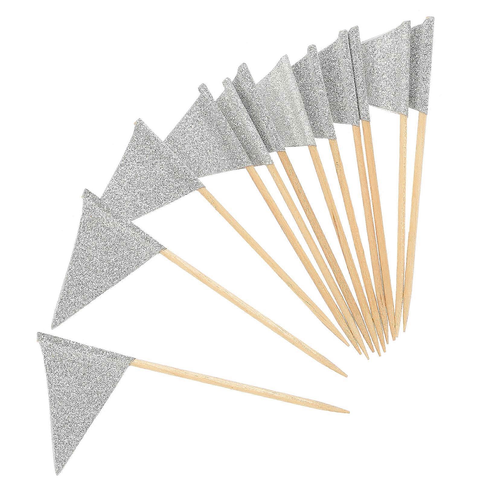 Silver Decorative Food Flag Picks for Party Decor Creative Paper Cocktail Toppers 12 Pieces