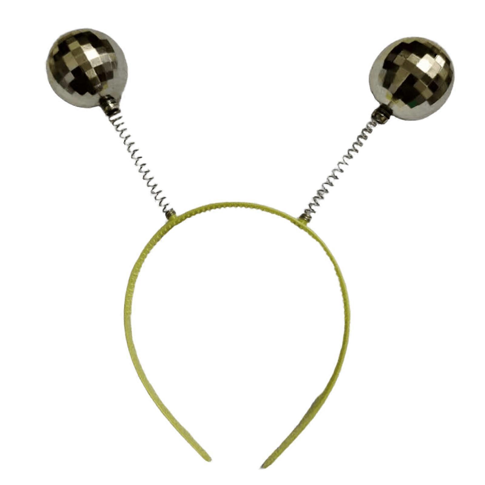 Silver Alien Headband with Swaying Glittering Balls Headpiece Hair Decoration Headwear for Disco Queen Costume Party Yellow
