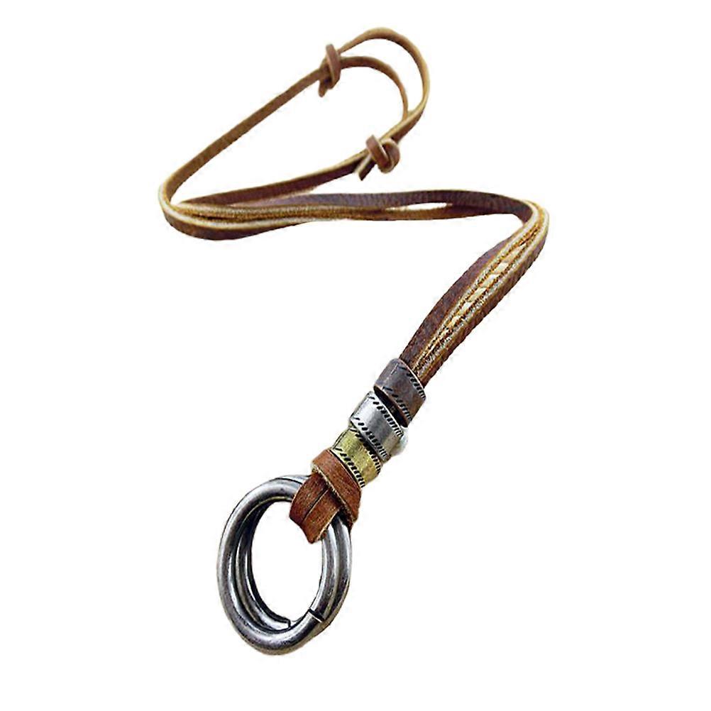 Silver Mens Necklace Leather Strap Necklace Vintage Necklace Men Brown Leather Chain J Necklace Men