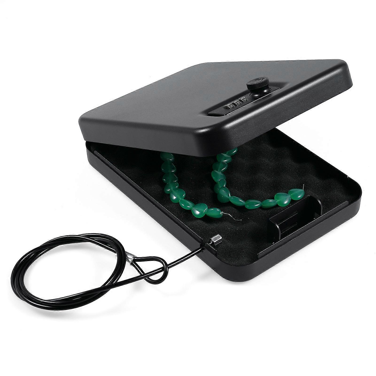 Small Safe Box Portable Travel Lock Storage Cabinet 3-digit Password Case with Security 3Ft Steel Cable Sturdy Structure Anti-scratch Foam Lock for Pa