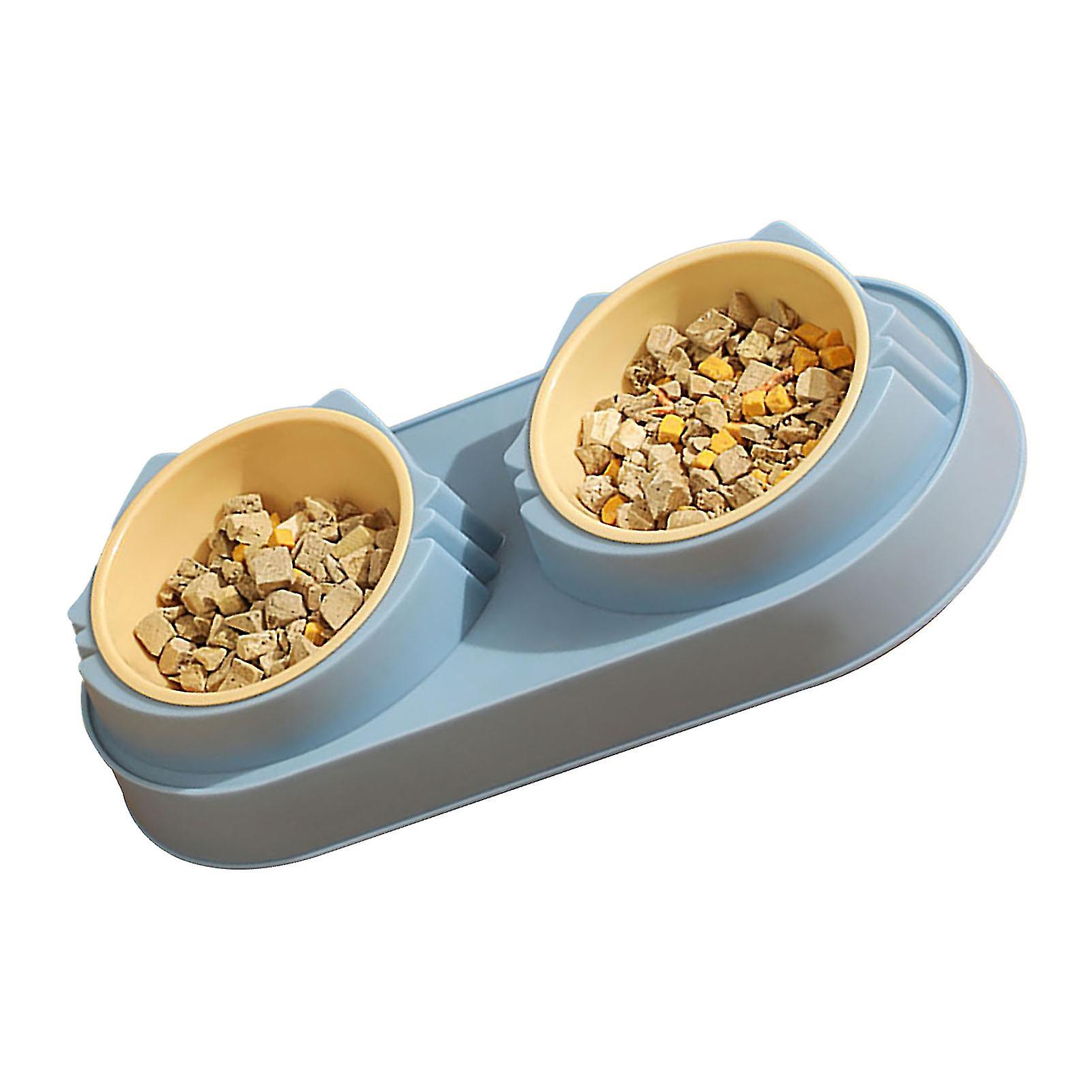 Double Pet Bowl Large Caliber Prevent Slip Spill Proof Pet Food Bowl Set for Pets Dogs Cats Blue