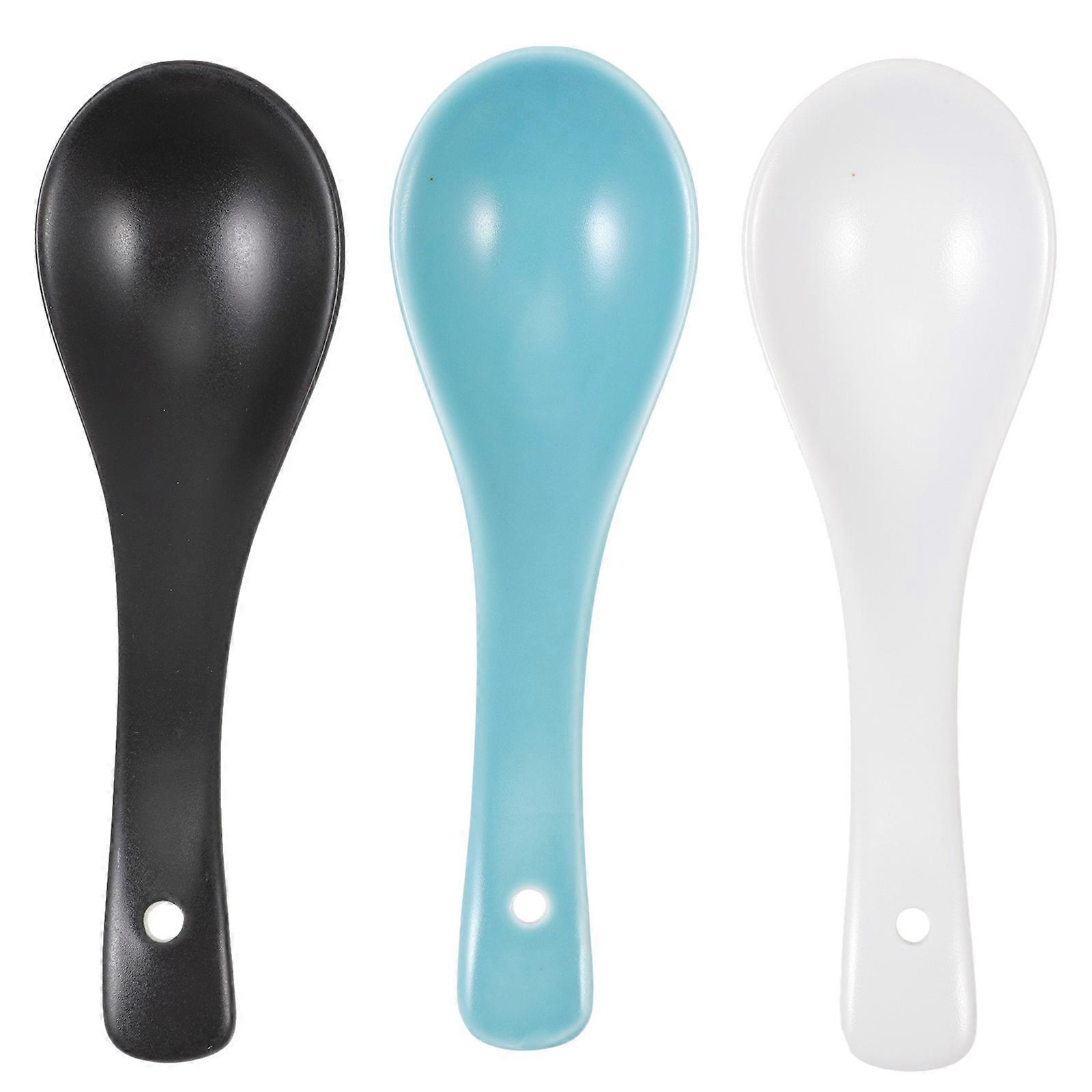 Asian Soup Spoons Ceramic Multipurpose Spoons Home Cooking 3Pcs