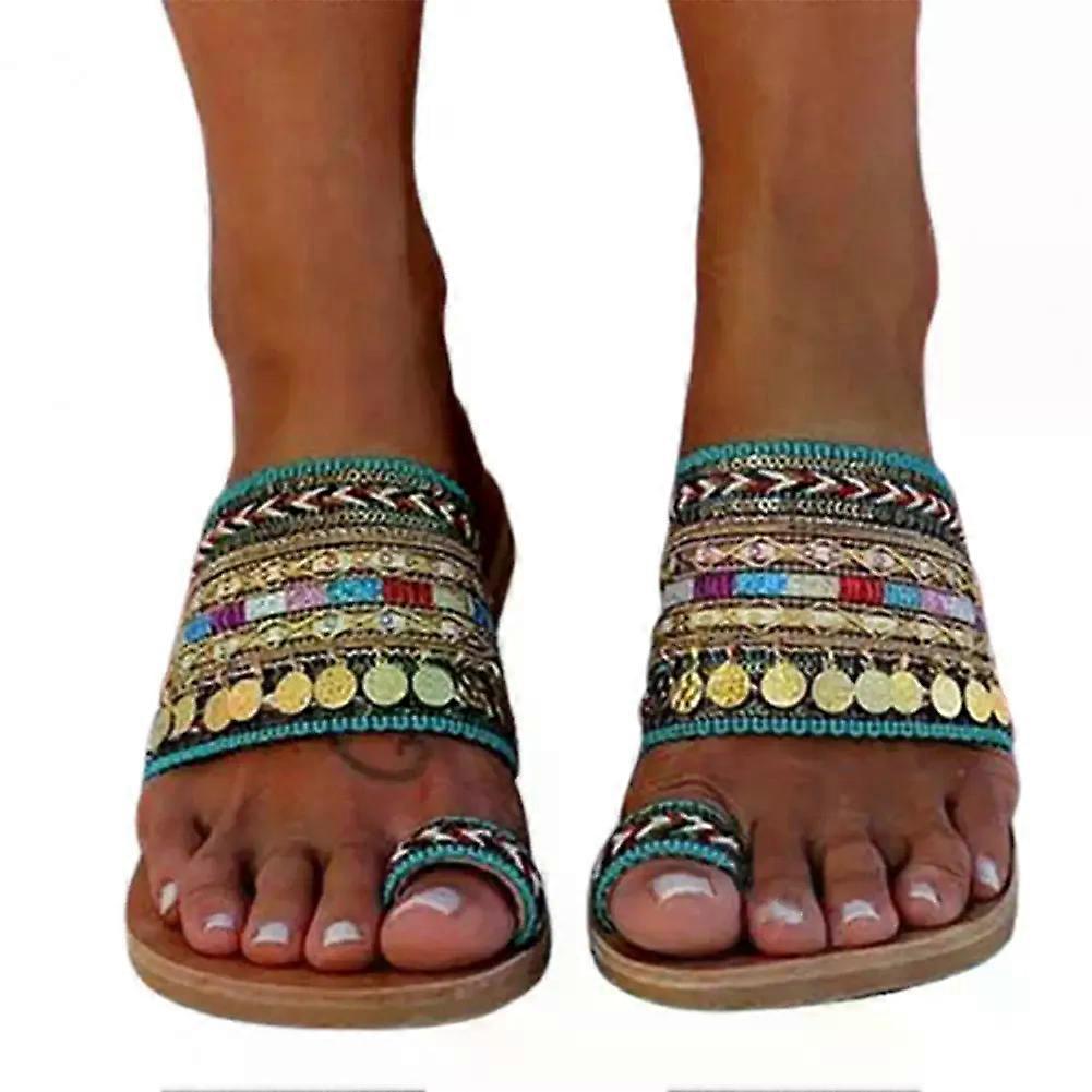 Stylish Women Flip Flops Tassel Trendy Sandals Bohemian Knitted Upper Flip Flops with Clip Toe Ring