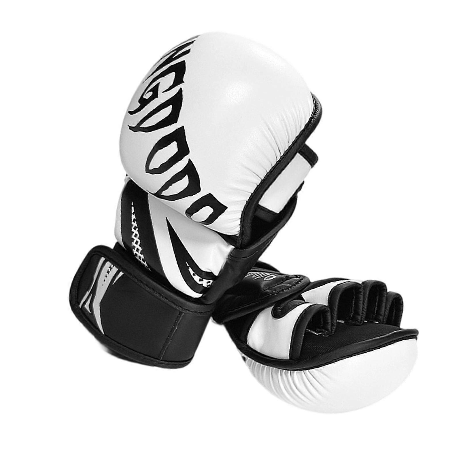 Half Finger Boxing Gloves Kickboxing Gloves Adjustable Wrist Wrap for Adult Teen Punching Bag Sparring Training Fitness White M