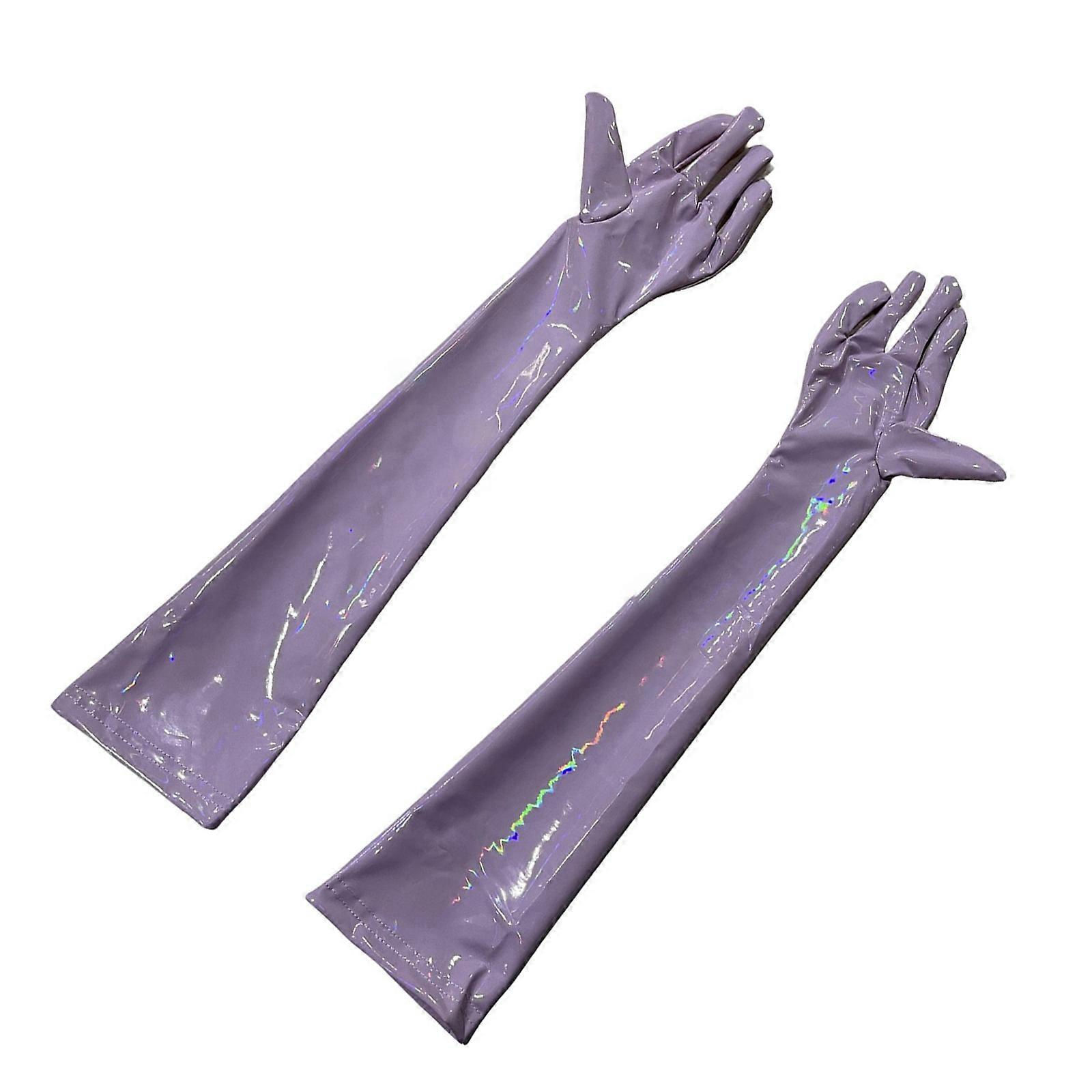 Luxurious PU Leather Long Gloves for Women Night Club Arm Gloves for Masquerades Party and Special Occasion Dressingup Light Purple