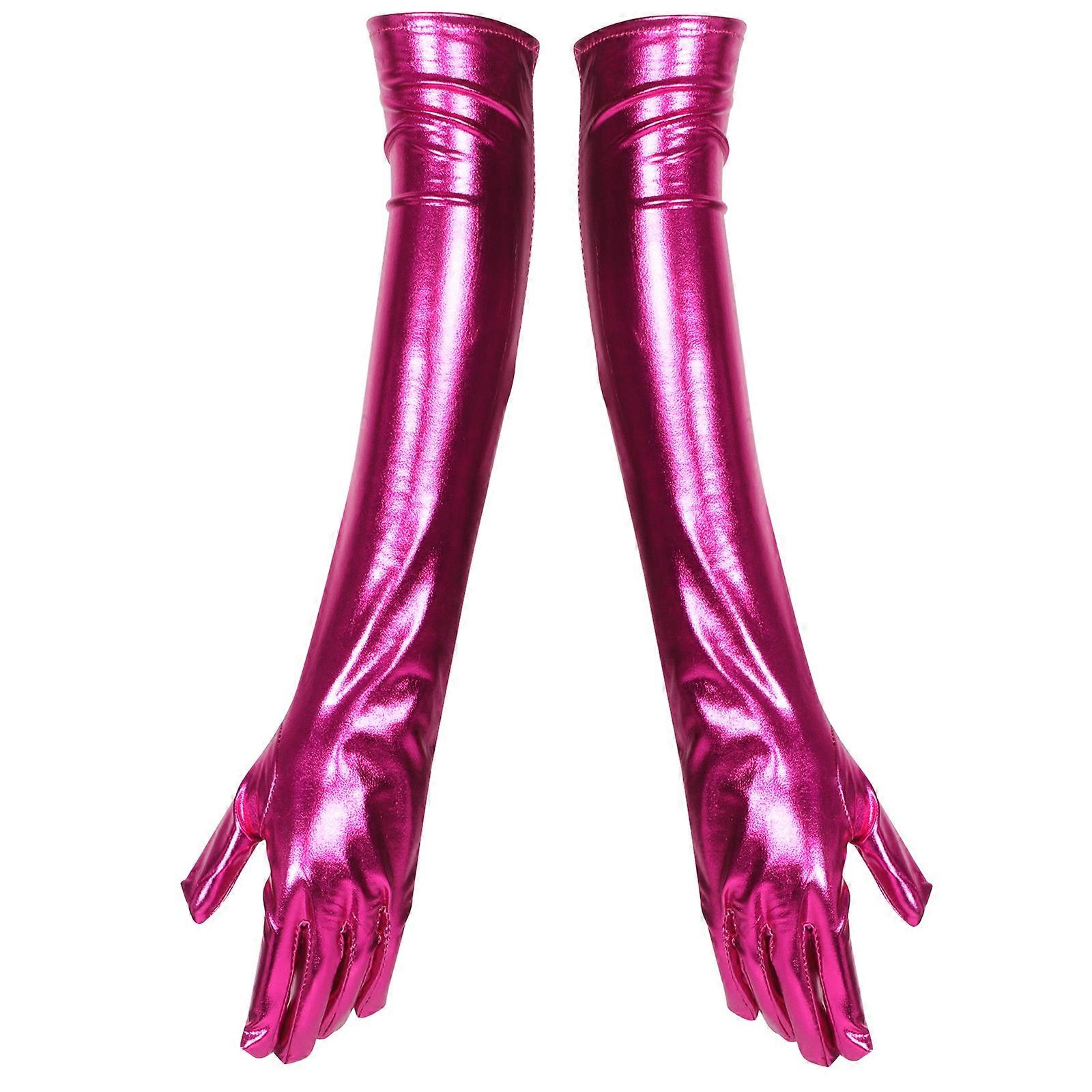 Rosy Gloves Faux Leather Women Shiny Spandex Elbow Length Comfortable Fit 1Pair