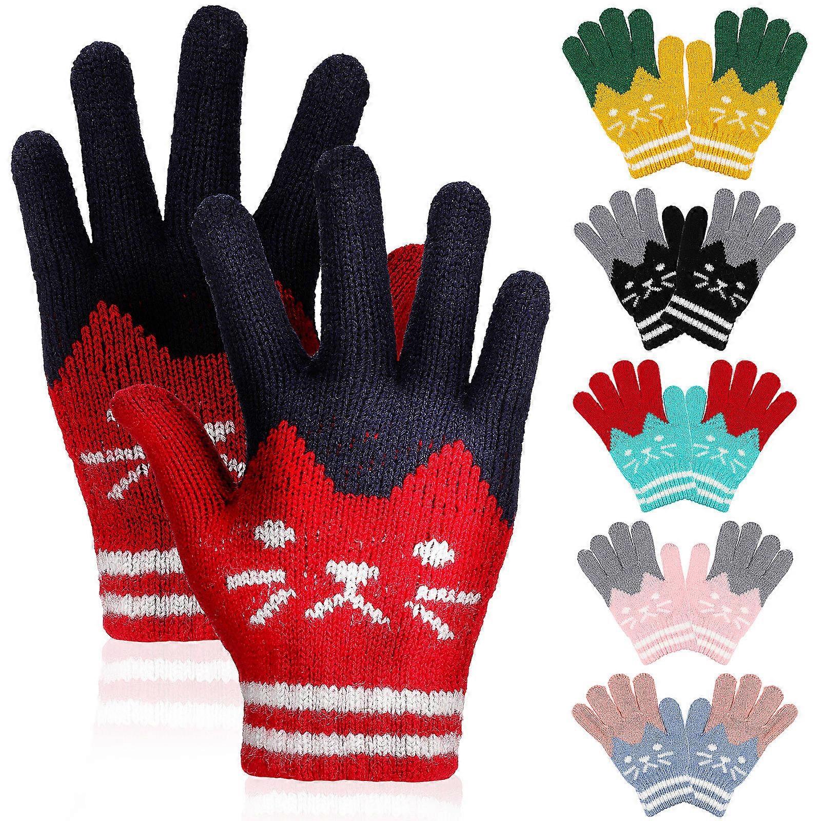 Childrens Gloves Knitted Warmth Winter Skiing Green and Ginger Yellow 6 Pairs