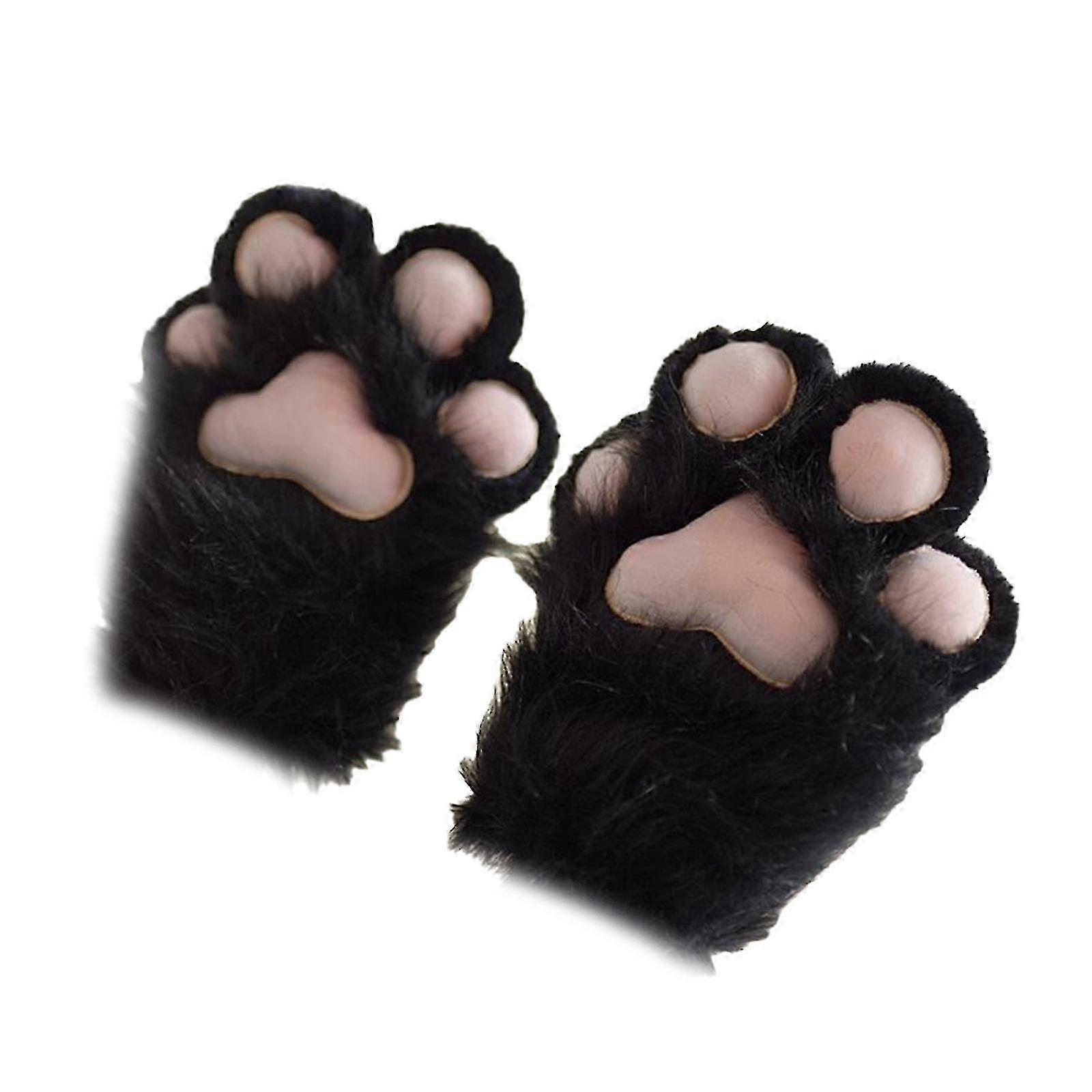 Anime Cats Paws Gloves Furry Plush Beast Paws Gloves for Girl Adult Halloween Party Costume Handwear Cosplay Accessories Black - FKB