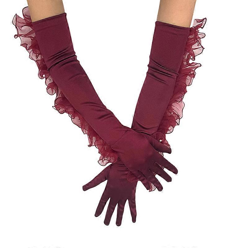 1920s Themed Party Gloves Long Finger Retro Accessory Lightweight Polyester For Women Dance Costumes Evening Wear Wine Red