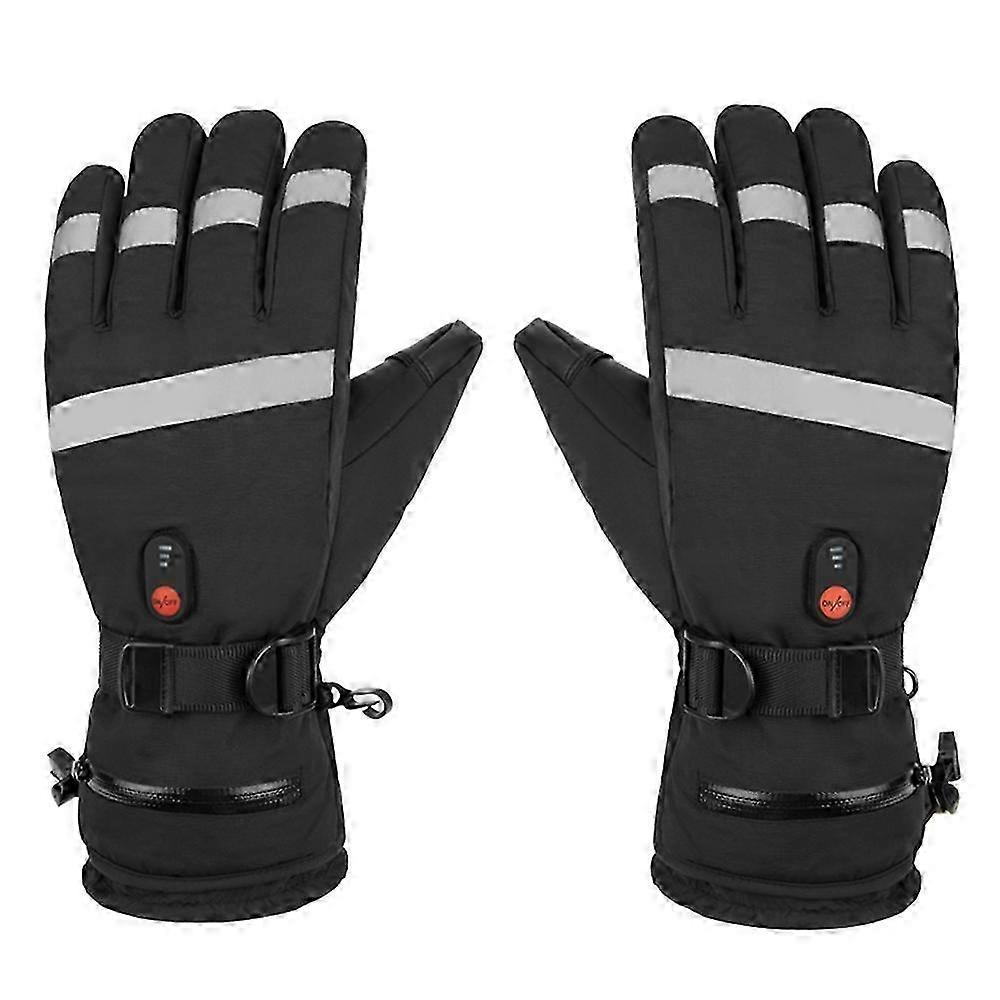 All-Weather Waterproof Protection¡¿These electric heated gloves are crafted with premium waterproof fabric, making them ideal for winter sports and outdoor work. The exterior effectively repels water and snow, keeping your hands dry and comfortable in challenging weather. Paired with a plush inner lining, they provide exceptional warmth and insulation for prolonged use in cold conditions Adjustable Heat Settings¡¿Enjoy tailored warmth with three adjustable heating levels, ranging from 40¡æ to 65¡æ. A simple long press of three seconds powers on or off, while the built-in heating system maintains a consistent temperature Comes with 6000mAh Battery¡¿Equipped with removable 6000mAh battery, these gloves ensure reliable heating throughout your outdoor activities. The battery offers hours of uninterrupted warmth, making them perfect for long skiing trips, hiking adventures, or daily commutes Touchscreen-Compatible Fingertips¡¿Operate your smartphone, GPS, or other touchscreen devices with ease, thanks to full-finger touchscreen compatibility. This innovative feature allows you to stay connected without removing your gloves Safety and Comfort Enhancements¡¿Reflective warning strips on the gloves enhance visibility in low-light conditions, increasing safety during nighttime activities. Adjustable wrist straps ensure a snug fit, preventing heat loss and maximizing comfort during extended wear Specifications: Size: One size fits all Material: polyester, cotton, far-infrared heating wire Rated voltage: 5V Rated power: 5W Package included: 1 x Pair of Electric Heated Gloves 2 x 6000mAh Battery