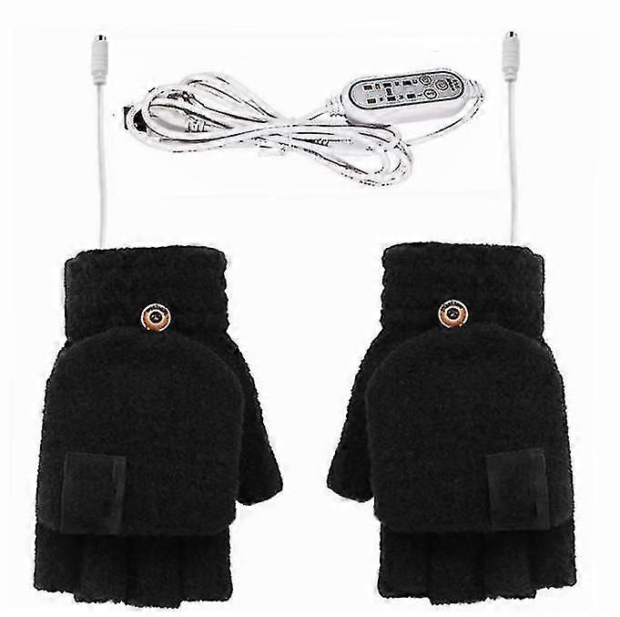 Usb Heated Gloves Womens & Mens Winter Warm Full & Half Gloves 3 Heating Levels Knitted Gloves Hand Warmer 2pcs-black