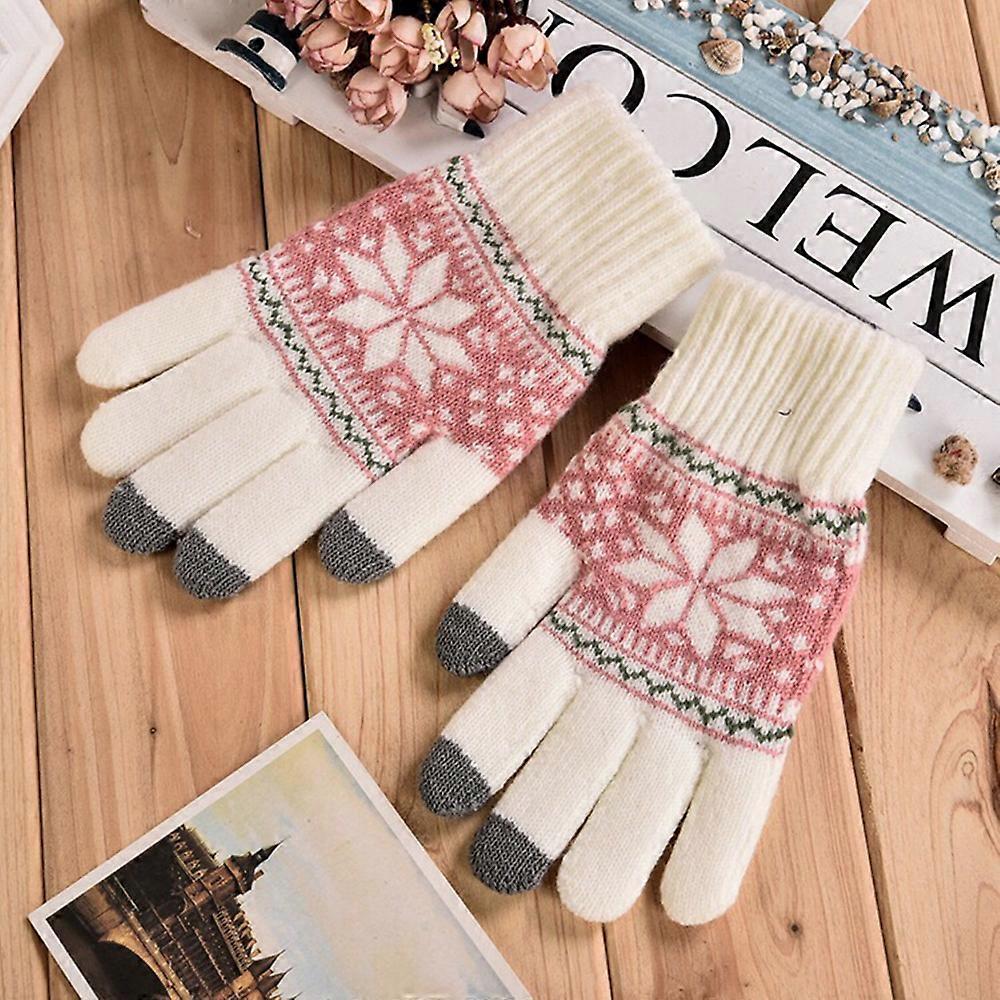 Winter Touch Screen Gloves Snow Flower Printing Keep Warm for Women and Men