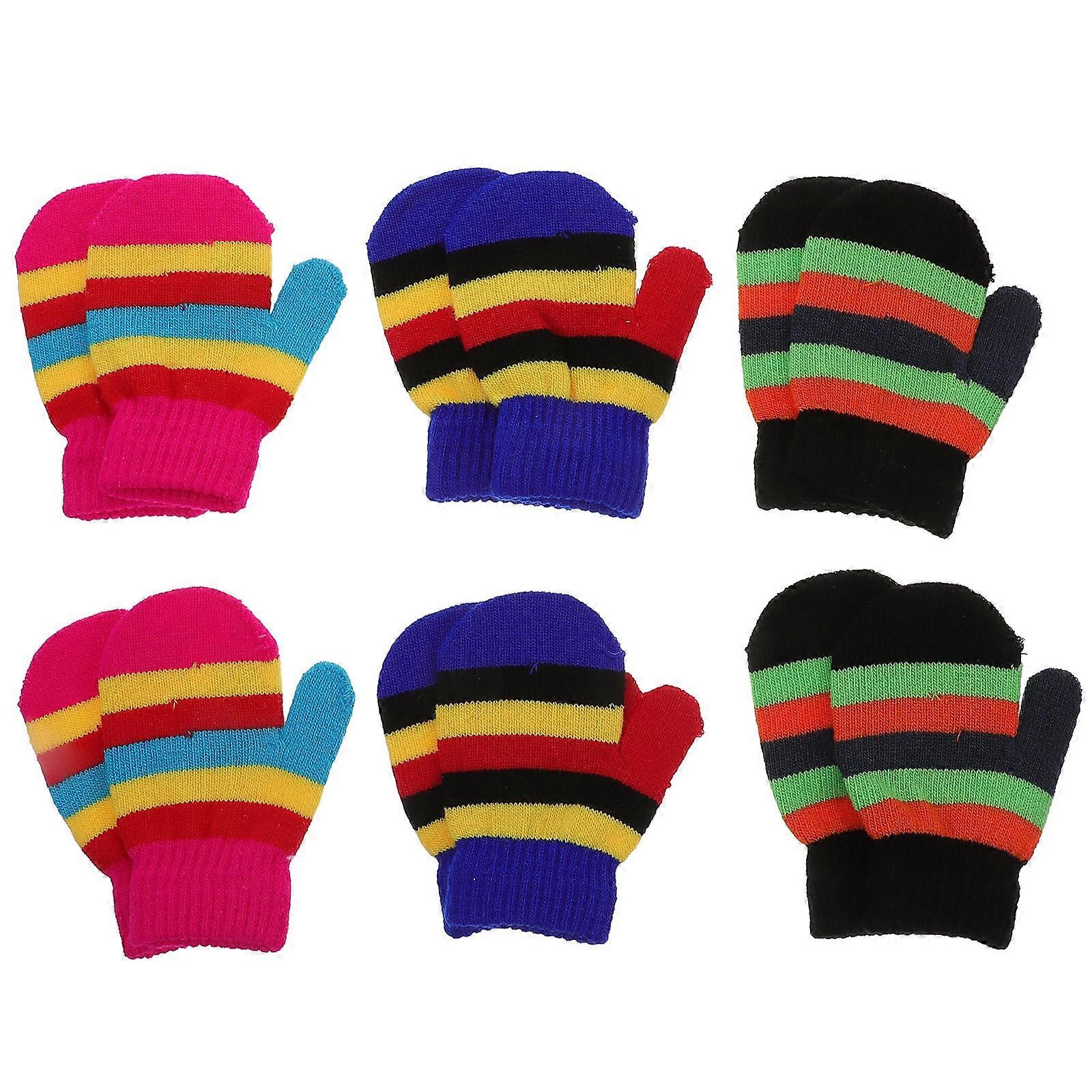 Warm Knitted Gloves For Kids Outdoor Winter Activities 13.5X6.5CM Bright Color 6 Pairs