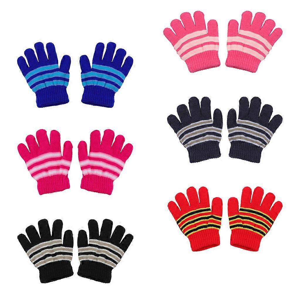 Kids Knitted Gloves Full Finger Function with 6Pairs Warm Winter Gloves