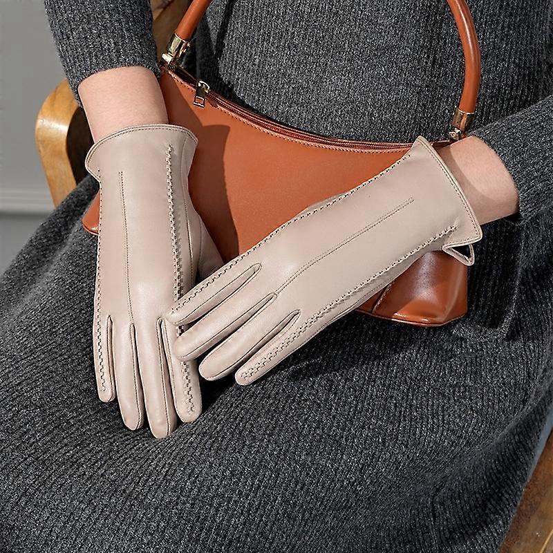 Lambskin Leather Gloves for Women Winter Fleece Lined Touchscreen Warm Windproof Driving Riding Fashion