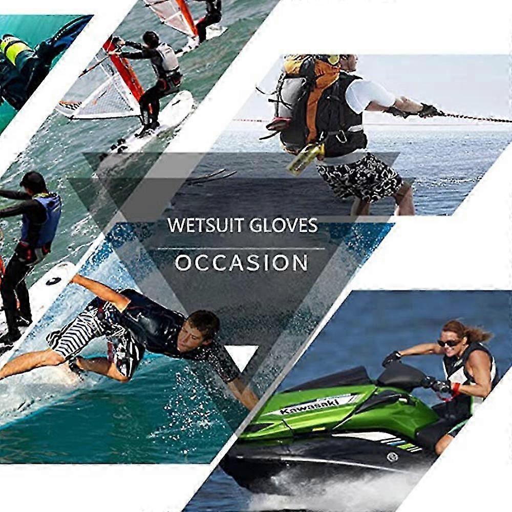 Product 1.【Keep Your Hands Warm】This wetsuit glove has excellent thermal performance to keep your hands warm in cold sea water and various water sports such as snorkeling, surfing, swimming, etc. 2.[Flexible and Durable] The neoprene gloves are ergonomically designed, glued with blind seams, perfectly fit the hand, more durable, maximum release the hand resistance in the water, and get more adequate protection from sharp objects and marine life. 3.【Anti-slip Rubber Printed Palm】With diving gloves with anti-slip rubber printed palm, you can rest assured that you won't lose your grip and will fully enjoy snorkeling, surfing, swimming, sailing, diving, kayaking, canoeing or other fun water activities. 4.【Adjustable Wrist Strap】The adjustable velcro strap of the diving glove can tightly wrap your wrist, maximum prevent water, sand or other small objects from entering your hand and prevent the water glove from falling off. (Please note that it is not a fully waterproof product) 5. Wide Application: The neoprene gloves are widely used in snorkeling, surfing, swimming, sailing, diving, kayaking, rafting, canoeing, boating and other water activities. They are unisex.