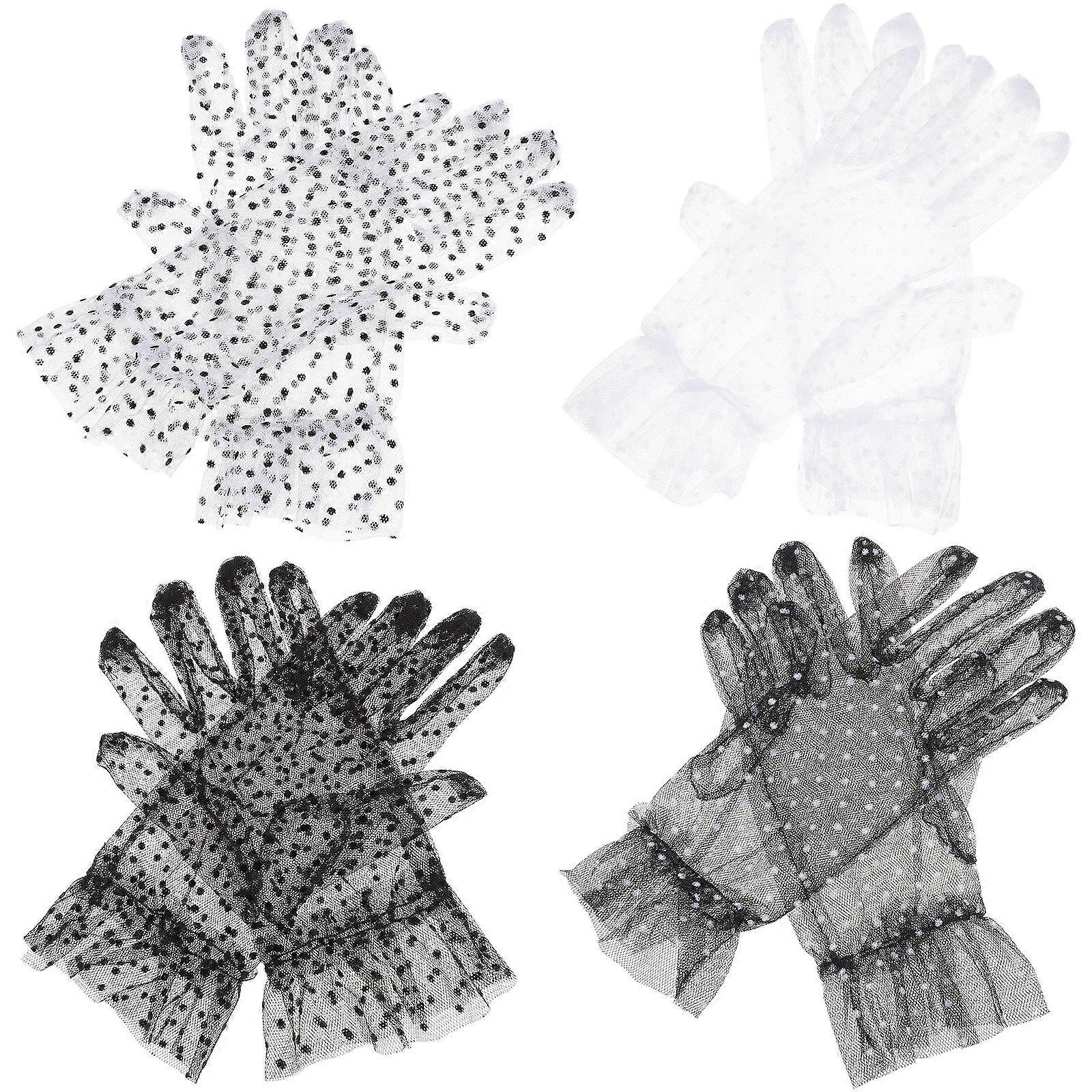 Wave Dot Mesh Gloves Short Lace Gloves for Women Accessories 4Pairs