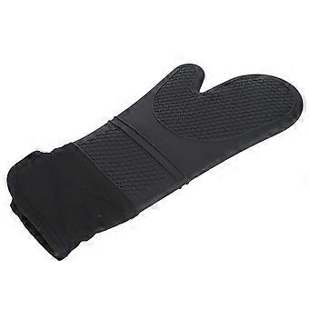 Oven Mitts Oblique Mouth Texture Silicone Nonslip Soft Durable Flexible to Use Cotton Lining Silicon Oven Mittens(Black )