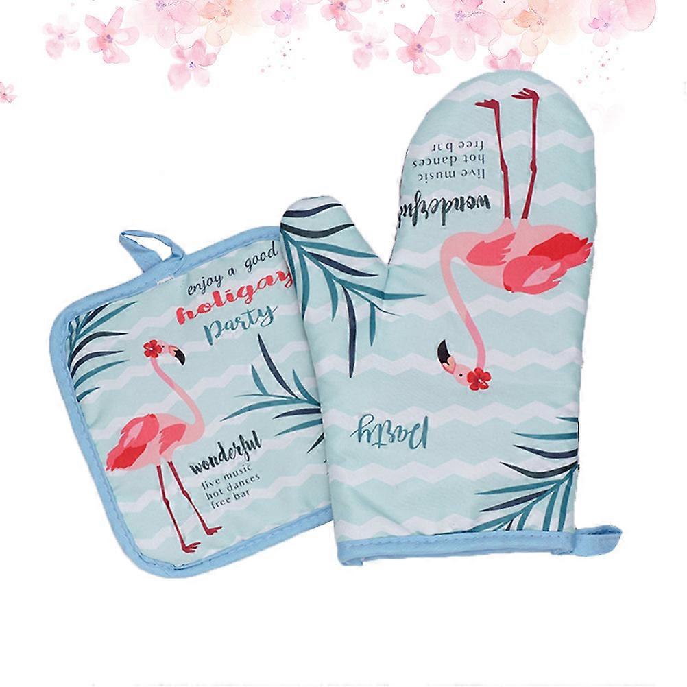 Thick Oven Mitts and Mat Heat Resistant Protective Kitchen Cooking Baking Tools Assorted Color M Size 2Pcs